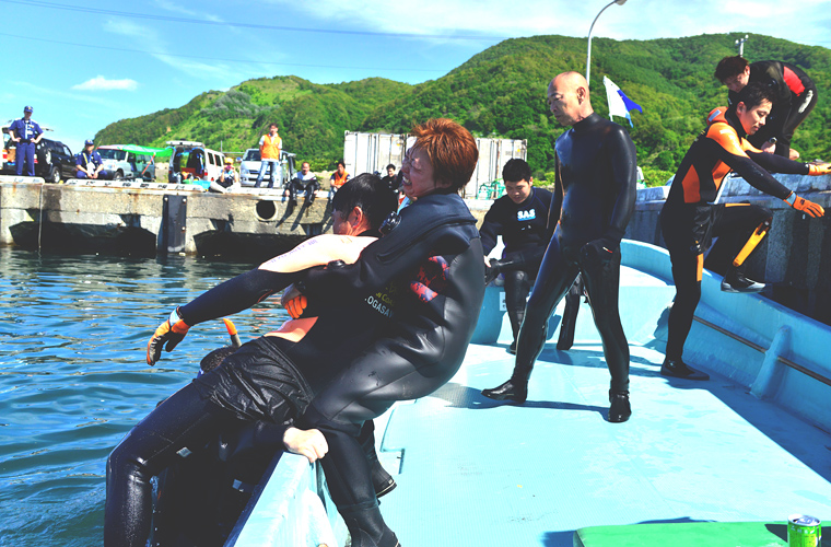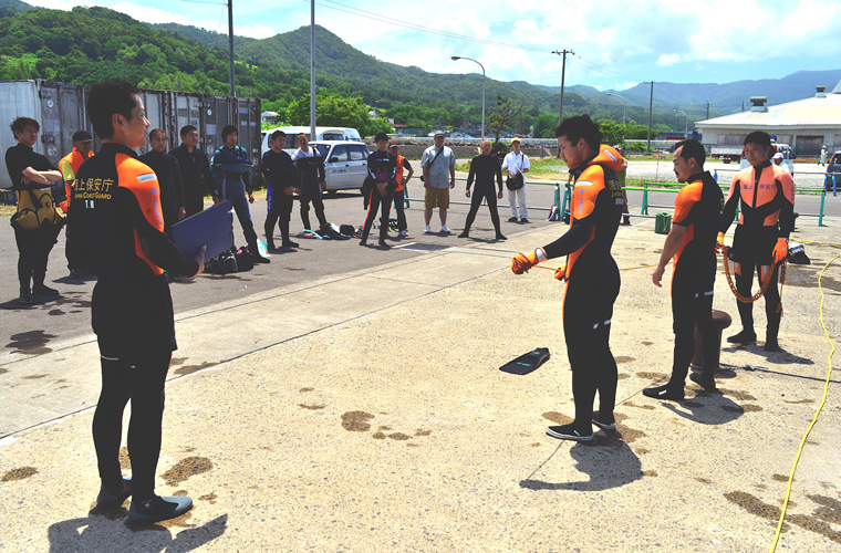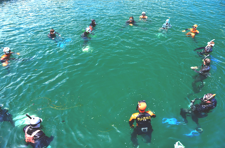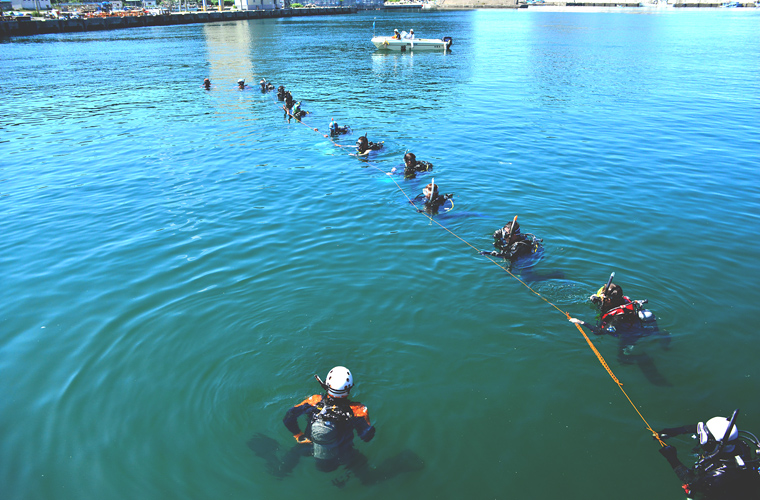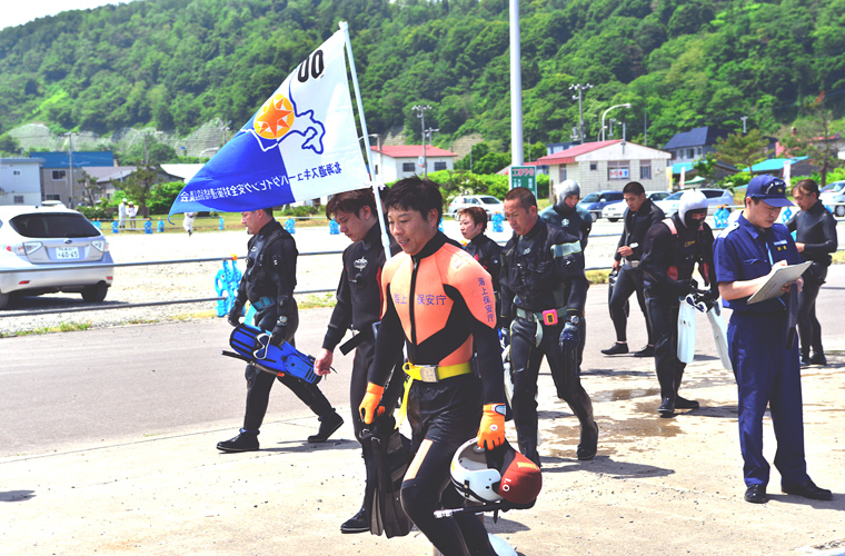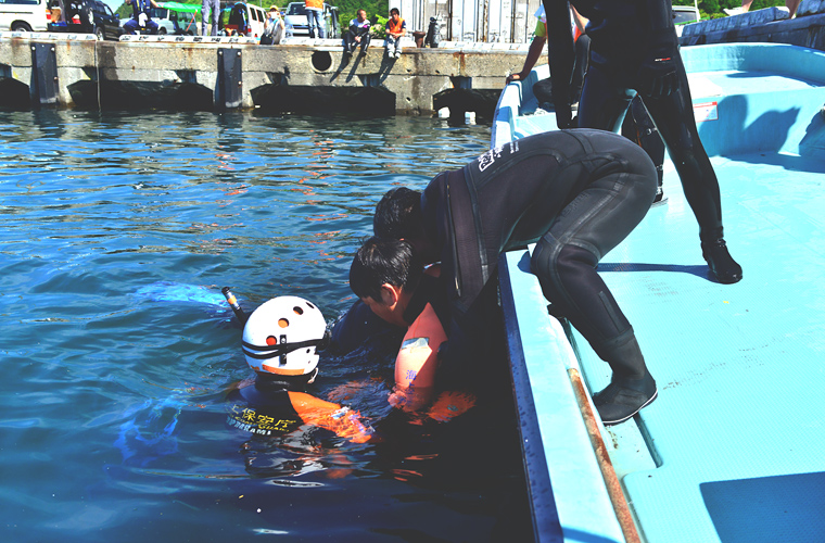 ・参加機関 (1)第一管区海上保安部 (2)小樽海上保安巡視船ほろべつ(潜水士及び支援班) (3)北海道スキューバダイビング安全対策連絡協議会会員 ・参加人数 33名 |