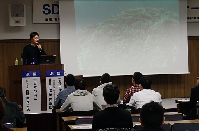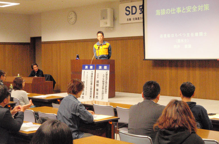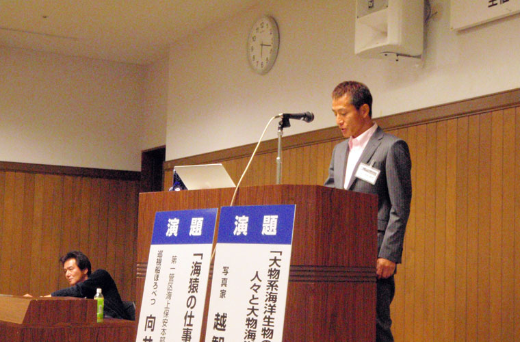今年も多数のご参加ありがとうございました。 そして、ご登壇いただきました講師・先生におかれましては 貴重な講演を心より感謝申し上げます。 ・開催:平成26年11月28日(金)/札幌「かでる2・7」) ・演題/講師: 「大物系海洋生物の撮影・現地の人々と大物海洋生物との関わり方」 写真家 越智 隆治 氏 「海猿の仕事と安全対策」 第一管区海上保安本部小樽海上保安部 巡視船ほろべつ 向井 貴深 氏 ・参加人数:約80名 |