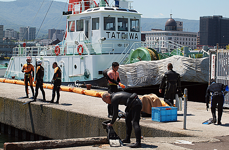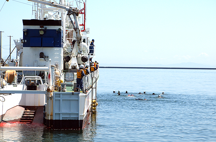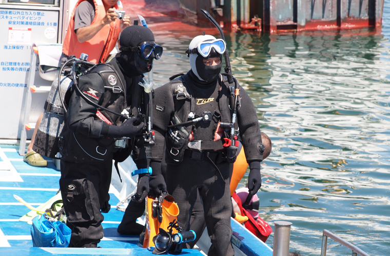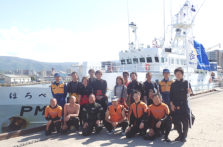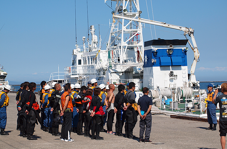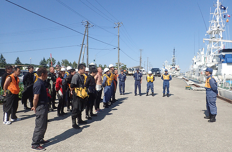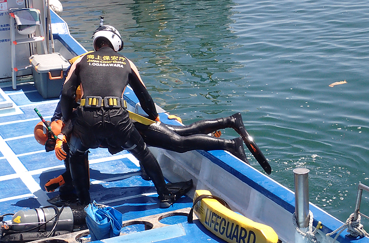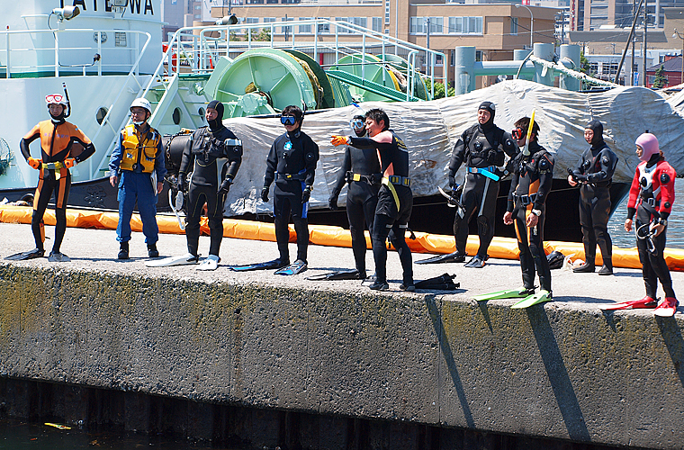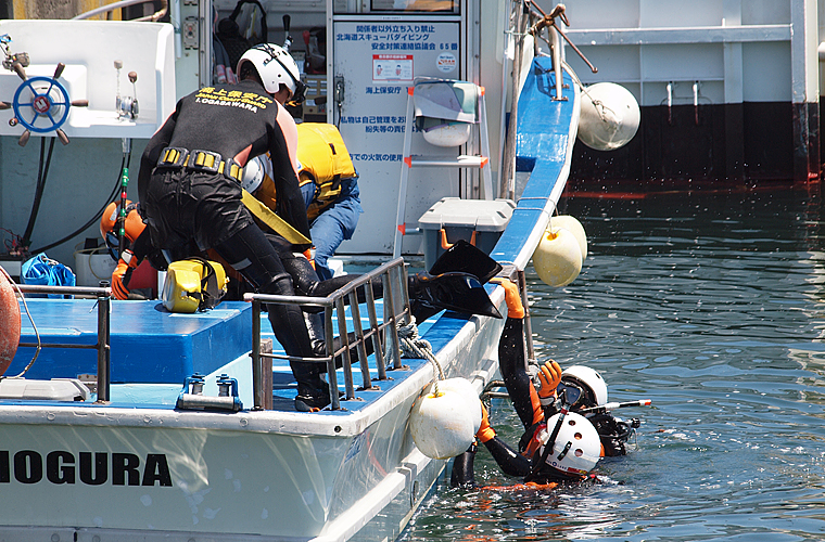第一管区海上保安本部との合同潜水訓練(小樽港内) 2016.06.29 2024.10.06 今年も第一管区海上保安本部との合同訓練を実施いたしました。 当日は総勢、約30名の規模で行われ、捜索訓練や船上への引き上げなど、本番さながらの緊迫感の中、無事訓練を終了しました。 当日ご参加いただきました皆様、大変お疲れ様でした。 【参加機関】 (1)小樽海上保安部巡視船ほろべつ(潜水士及び支援班) (2)北海道スキューバダイビング安全対策連絡協議会会員 【参加人数】 33名 この記事のタイトルとURLをコピーする 協会旗(会員専用)販売のお知らせ 前の記事 ダイビング安全対策セミナー2017 次の記事