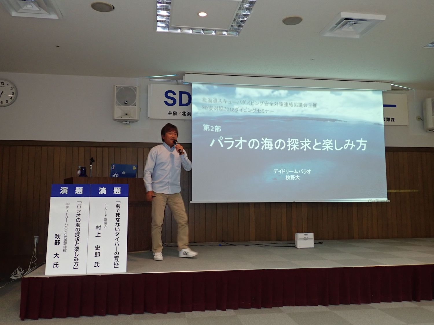 「ダイビング安全対策セミナー2018」が、かでる2・7にて開催されました。80名以上の方々にお越しいただき盛況のうちに終わる事が出来ました。今年も多数のご参加ありがとうございました。